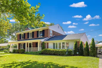 Come see this stunning Colonial home on a quiet street, perfectly set on a jumbo corner lot. Step onto the inviting front porch with views of both the front and side yards before heading inside. The first floor features a bright living room, private office with French doors, and a massive eat-in kitchen with a large island that opens to an expansive family room with vaulted ceilings, a dry bar with wine fridge, gleaming hardwood floors, and one of three fireplaces, this space is ideal for entertaining- complete with sliding doors to a fully fenced backyard and patio. Forgot to mention, there's a mudroom too! Upstairs you'll find three bedrooms, including a spacious primary suite with a beautifully remodeled bathroom. The large basement offers even more living space and abundant storage, while the 2-car detached garage comes equipped with EV charger capability. All this is an unbeatable location-- close to top schools, dining, and convenient transportation.